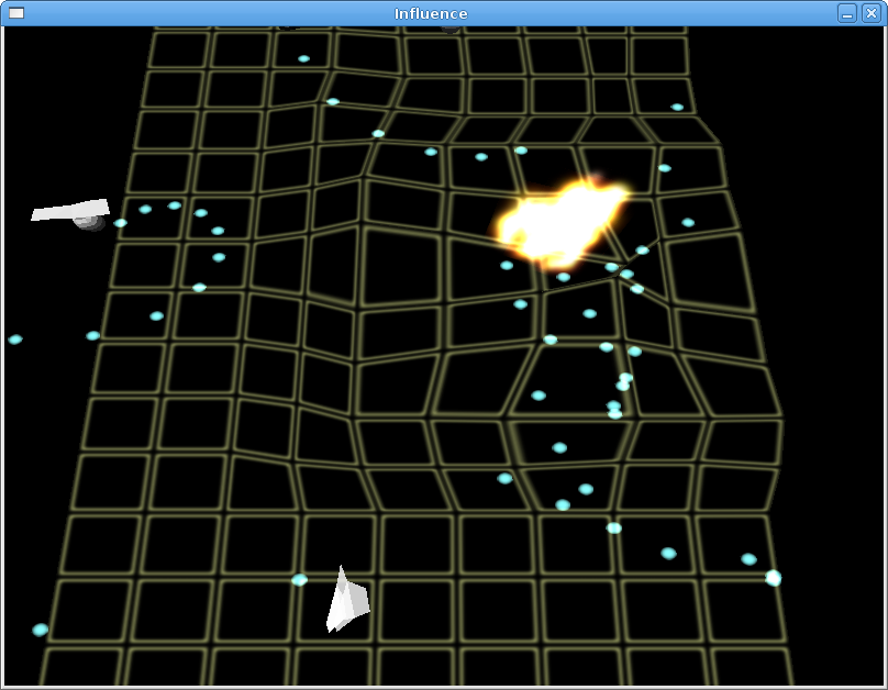 It’s not really a “shooter” in the generic sense, though, since you don’t really do any shooting. In lieu of shooting, the grid is now the weapon. And the only weapon. You can “shoot” pulses through it to knock enemies into each other or off of the grid completely. Larger, limited bomb-like pulses rip pretty much everything up in seconds when things get a little too hot and heavy. And destroyed enemies caused their own ripples in the grid when they explode, pushing more enemies into each other and off the edges. It gets pretty chaotic ^^.